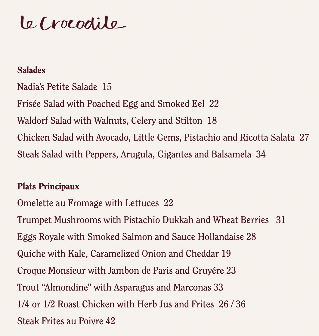 So that’s how my friend Laura Feinstein ended up at Le Crocodile in Brooklyn on a summer Friday afternoon. We snagged an outdoor table, ordered up a couple of IPAs from Talea, the women-owned brewery around the corner, and wisely chose the Eggs Royale with smoked salmon and hollandaise sauce.