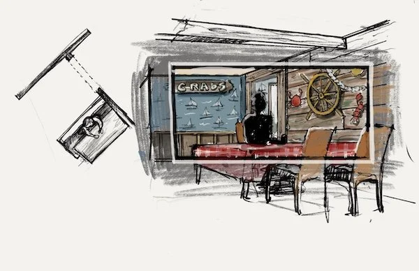 Because of my fine art background, I start with sketches. I think with my hands. Whether I’m in a van scouting or sitting in the office, I’m sketching out scenes, spaces, and visual ideas. Then my set designers and art director take those concepts and translate them into technical plans for construction. At the same time, I’m pulling wallpaper samples, choosing colors, and thinking about the emotional tone of each space.