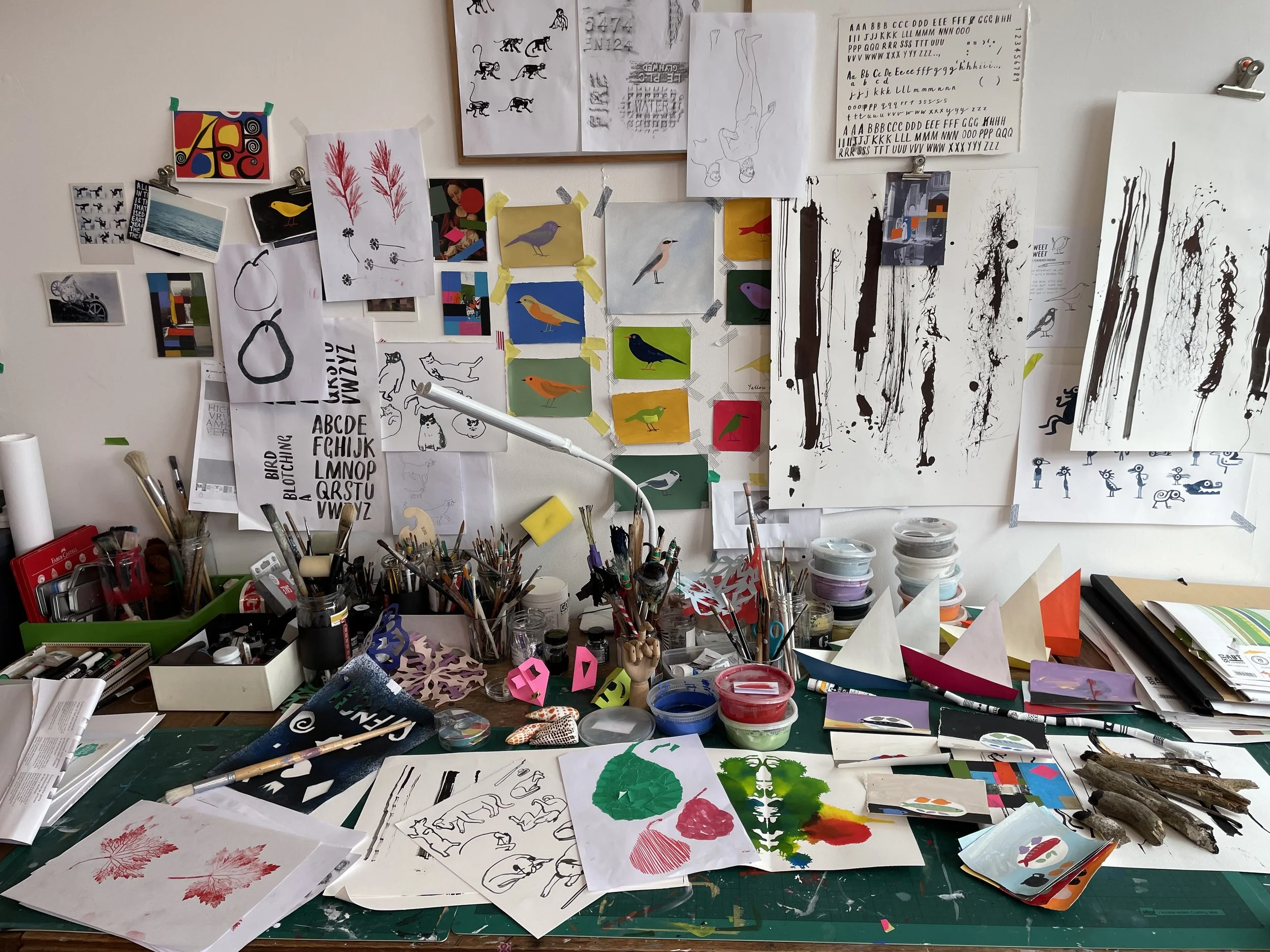 Central to her work is the idea that a little bit of creativity (or play) every day will make your life better, no matter your age or artistic abilities. Here, Deuchars shares how she works and plays, including the tasks that she gives herself on her daily walks along the London canal; creative (and literal) mess as a grounding principle in her work; and the story of why she went to Switzerland to look for her most recent book idea.