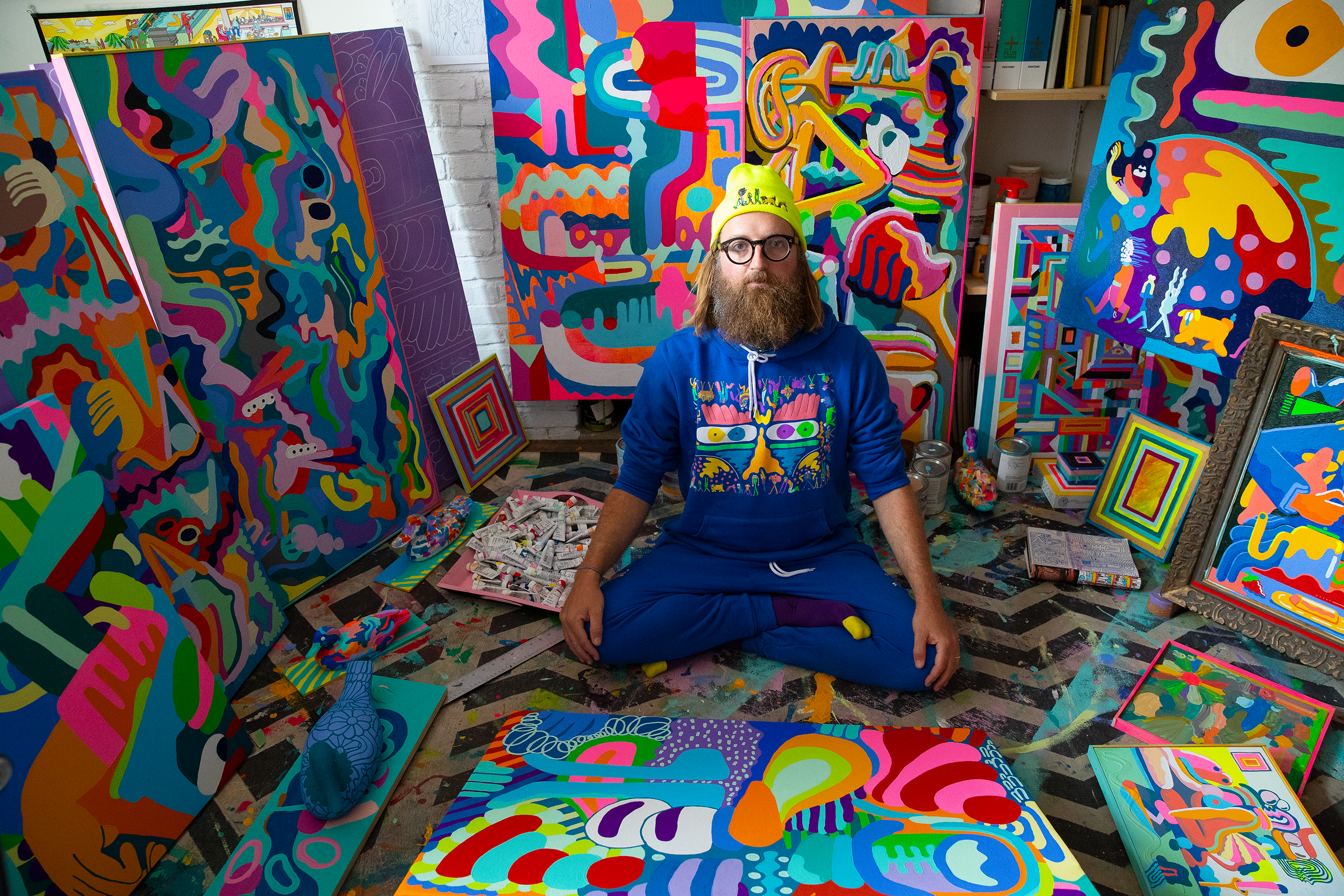 Mike Perry lives in a colorful world on and off the page. Photo by Anna Wolf.